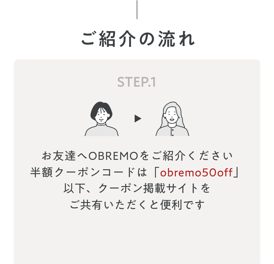 手動入力でクーポンがうまく適用されない方は上記「obremo50off」をコピー&ペーストしてご利用ください。